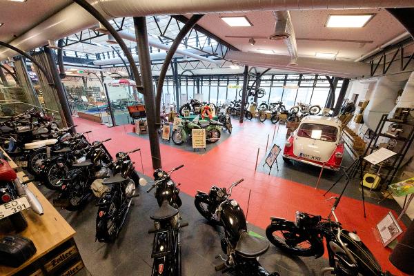 Die Ausstellung zeigt alles, was die Herzen der Zündapp-Freunde höherschlagen lässt. Auch das erste und einzige je in Serie gebaute Zündapp-Auto – der legendäre Janus – gehört selbstverständlich zur umfassenden Ausstellung. In der beeindruckenden Sammlung findet sich unter anderem auch eine original Levis-Maschine aus England, die als Prototyp für das erste Zündapp-Motorrad Pate stand. Seltenheitswert hat die Z200 aus dem Jahr 1929, von der es nur noch ganz wenige Exemplare gibt. Die bullige KS 600 war als Wehrmachtsmaschine im Einsatz, daneben steht die K 800 mit vier Zylindern, die stärkste Maschine, die Zündapp je gebaut hat. Und natürlich gibt es im Zündapp-Museum neben einer ganzen Reihe der berühmten Bella-Roller auch absolut Kurioses zu entdecken: absolute Hingucker sind u.a. ein zum Snowmobil umgebauter RS 50-Roller, sowie ein im Jahr 2003 neu aufgebauter Bella-Roller aus dem Jahre 1965 mit sagenhaften 33 PS! Ebenfalls einzigartig präsentiert sich die nur fünf mal gefertigte KS 50 SuperSport, sowie ein Gespann für Kinder!